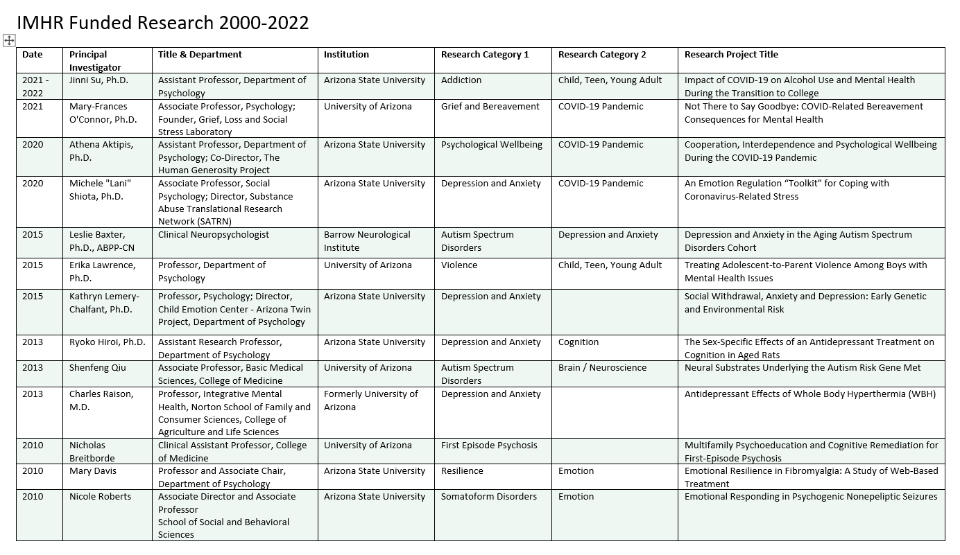 RECENTLY FUNDED RESEARCH: https://www.imhr.org/instituteupdates