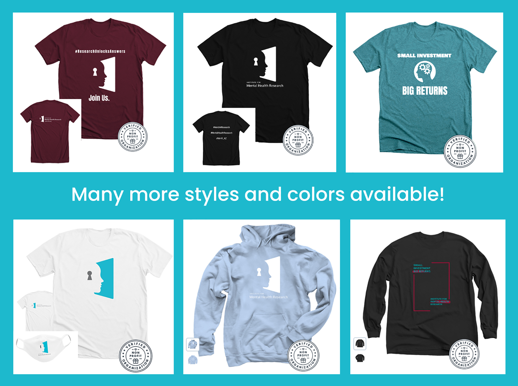By purchasing IMHR apparel, you are helping support seed funds for innovative, urgently needed research that will bring better diagnoses and treatments, better prevention, and ultimately, cures for mood and other emotional and psychological disorders. Make an impact, and look good doing it!